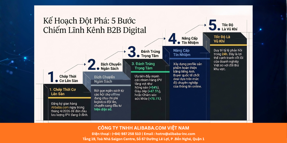 Xuất khẩu là con đường tất yếu để doanh nghiệp Việt Nam lớn mạnh. Với sự phát triển của công nghệ năm 2026, việc bán hàng trên Alibaba chính là đòn bẩy mạnh mẽ nhất. Đừng để đối thủ vượt mặt, hãy bắt đầu mở gian hàng Alibaba ngay hôm nay để đưa sản phẩm của bạn chinh phục thế giới.